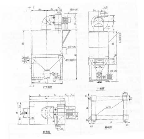 扁布袋除塵器 安裝尺寸表 |