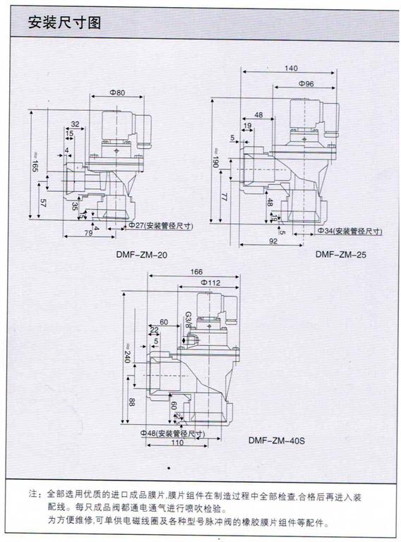 技術(shù)指標:工作壓力:0.4~0.7, 環(huán)境溫度:-10~55(℃), 使用介質(zhì):清潔空氣,膜片壽命:噴吹100萬次以上。